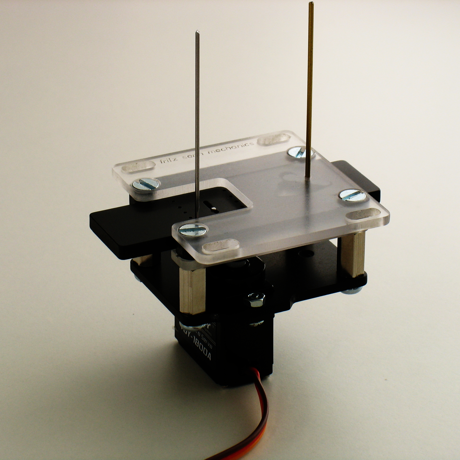 Für diese Anwendung ist der Antrieb mit einer Deckplatte versehen, bei welcher die Aussparung seitlich geöffnet ist. Damit kann der Stelldraht vielseitig auf dem Schieber montiert werden. Zusätzlich zu den hierfür bereits vorhandenen Bohrungen können weitere Bohrungen angebracht werden, z.B. wenn die Laterne außerhalb der Regel neben dem Gleis aufgestellt wird.